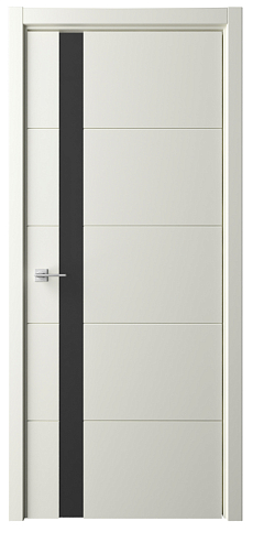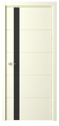 Дверь Геометрия-7 ширина 80 см Слоновая кость Эмаль Стекло черное кромка В цвет полотна в Томске