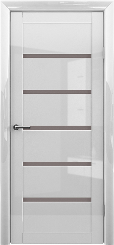 Дверь Вена ширина 90 см Белый глянец Глянец Стекло мателюкс бронза с замком в Томске